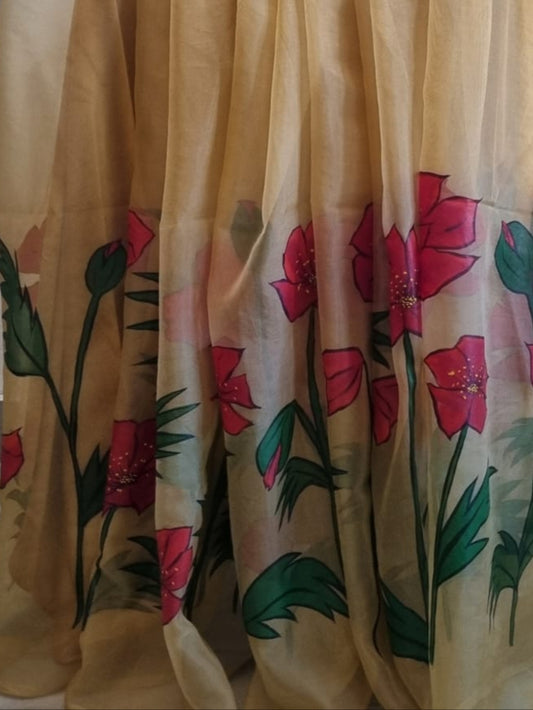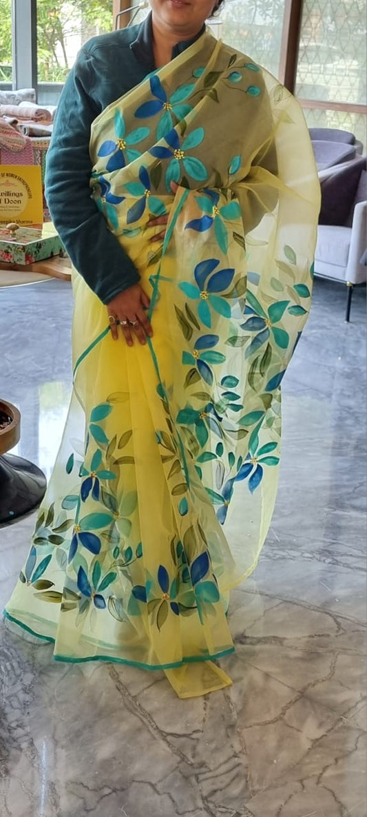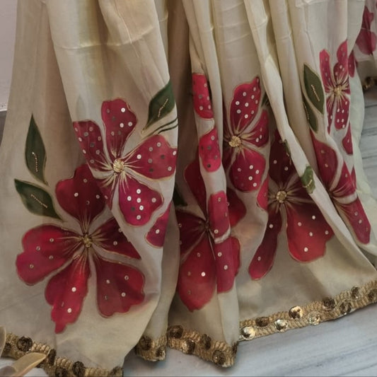 We are thrilled to present our unique range of handpainted sarees, suits, dupattas, kaftans, and much more—each piece crafted with love and care by the talented fauji wives who pour their heart and soul into every stitch and brushstroke.