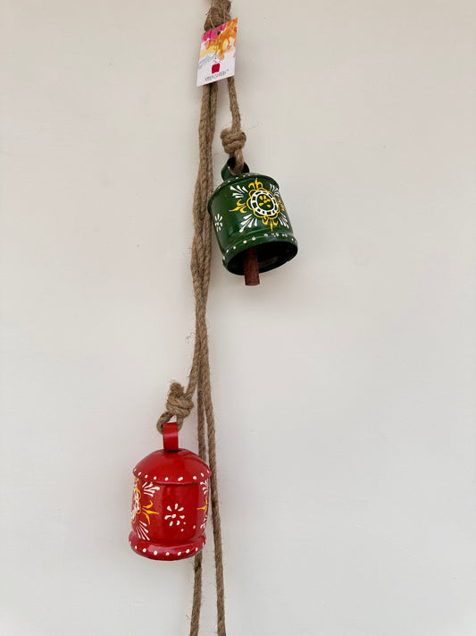 Cylindrical Coloured, Handpainted Decorative Cow Bells on Jute Rope by RNR