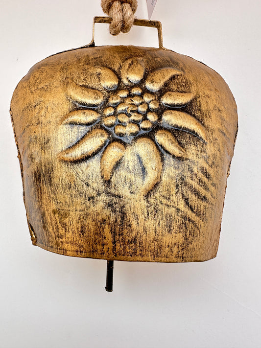 Golden Iron Metal Flower Stamped Swiss Style Cowbell by RNR