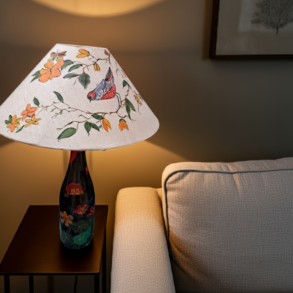 Chirpy Handpainted Lamp Shade and Bottle by RNR
